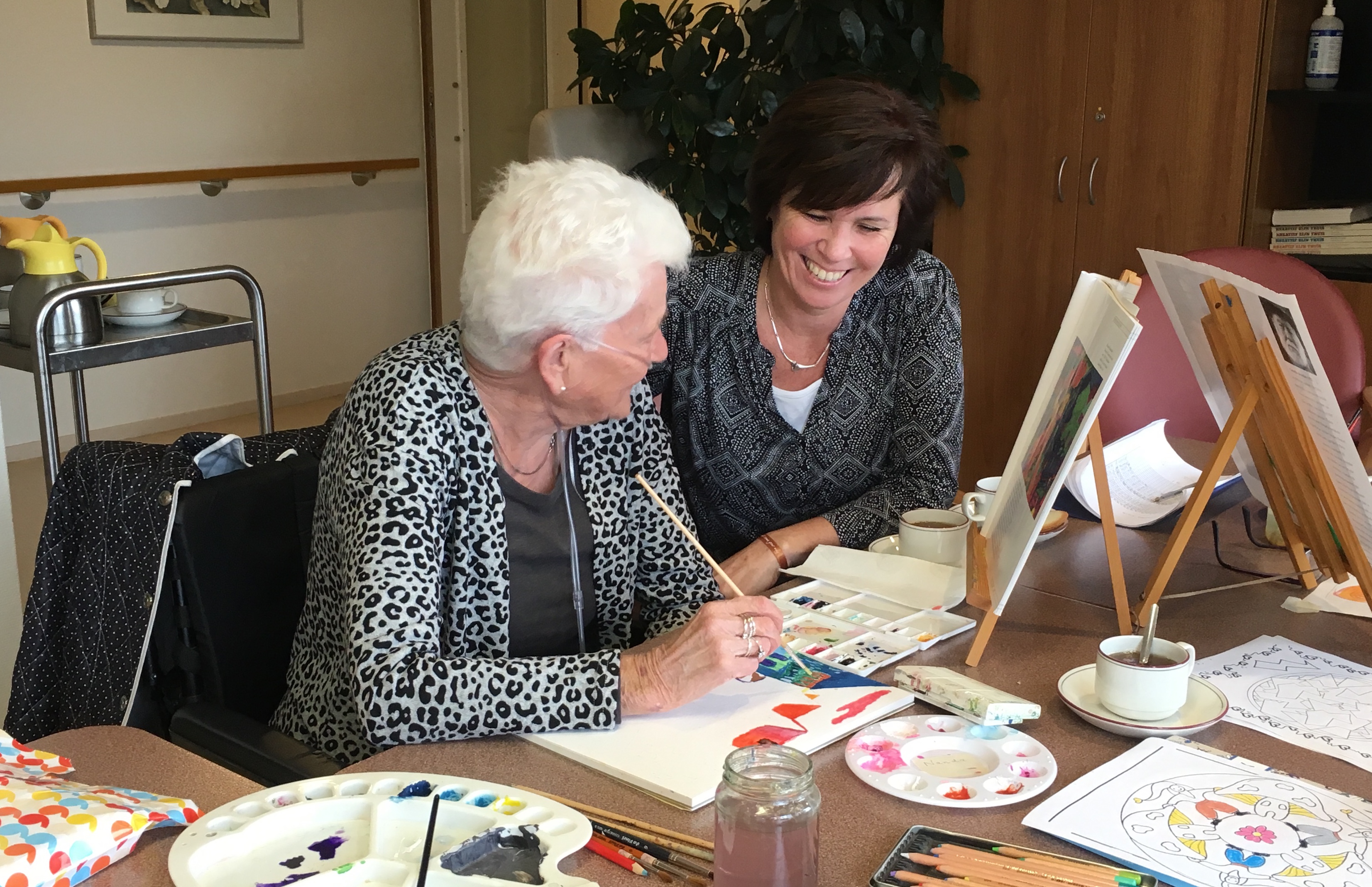 Muriel en ik hebben een aantal jaren ouderen begeleid bij creatieve bezigheden. In de omgang met ouderen zou ik Muriel met de volgende steekwoorden omschrijven:  zorgzaam, betrokken, begripvol, vol aandacht, zorgvuldig, opgewekt, hulpvaardig, alert, vriendelijk en rustig.